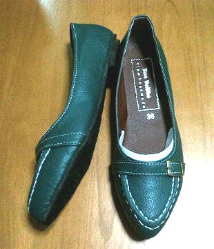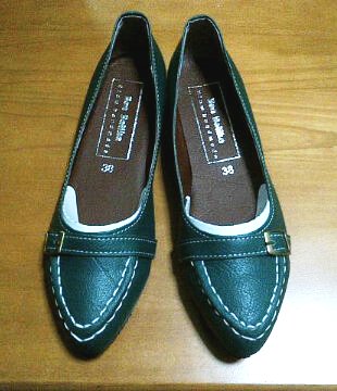รองเท้าหัวแหลม สีเขียวเข้ม แต่งเข็มขัดคาดด้านหน้า