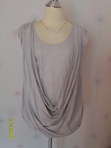 10.เสื้อคอถ่วงเทา ผ้าสเปนเดก ด้านในแต่งลูกไม้เก๋ๆ 130 บาท