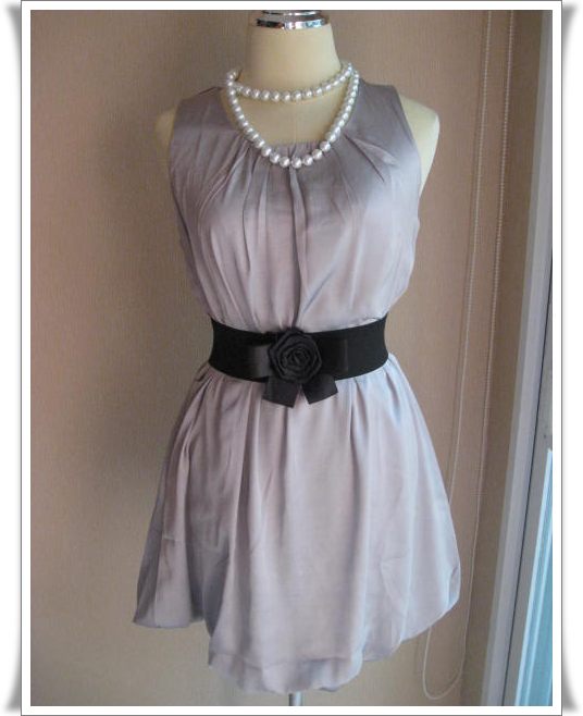 Dress people งานเกาหลี ผ้ายืดมีมาสองสี เทาอ่อนปักด้ายดำ, ดำปักด้ายชมพูตามรูป มีกระเป๋าด้านหน้าซ้ายมือ ราคา 380 บาท