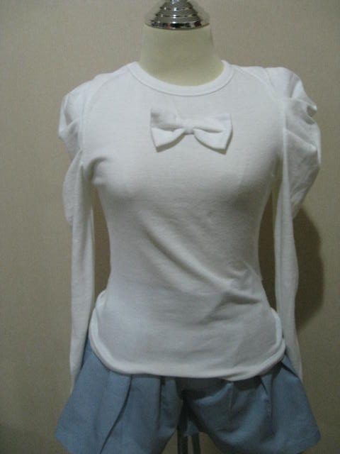 เสื้อแขนยาวผ้ายืดแขนพองสีขาว เทา หน้าอกมีโบว์น่ารักมากมายเช่นกันค่า ราคา 350 บาท จ้า Sale 300