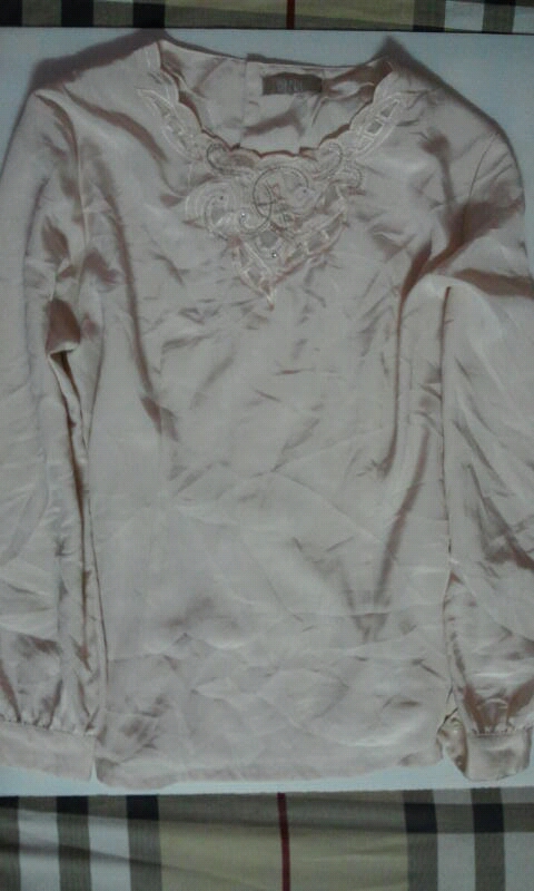 แขนยาวชมพูอ่อน คอป็นลายปักลายดอกไม้ อก 39 ยาว 24.5 80 บาท