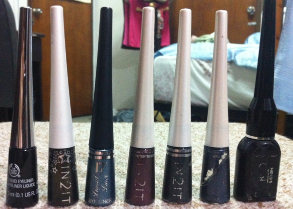 Eyeliner : The Body Shop สีดำของใหม่ใช้ 1ครั้ง 500 บาทแถมรวมไปกับ eye liner ทุกอันที่อยู่ในภาพ สภาพตั้งแต่ 40%-80%