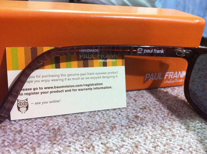 แว่นตา Paul Frank 2700 บาท ซื้อมา 5200 บาทจากสยามจริงๆตัดเป็นแว่นเลนส์ได้ แต่เราเอาไปตัดเป็นแว่นกันแดดซื้อมาหลังปีใหม่ แต่ไม่ค่อยได้ใช้