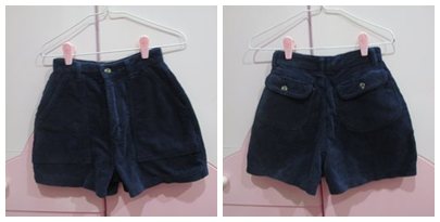 กางเกงลูกฟูกเอวสูงสีน้ำเงิน 100