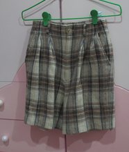 กางเกงลูกฟูกเอวสูงลายสก็อต 100