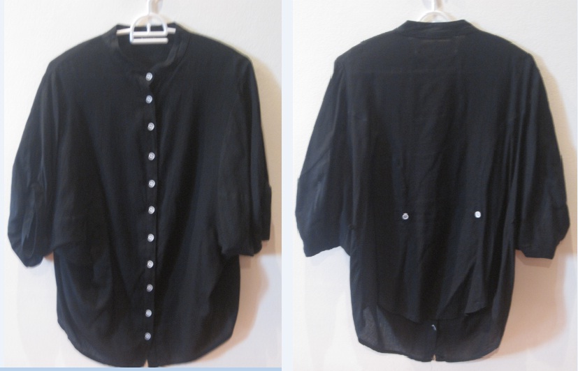 T026. 150 b. .เสื้อคอจีนสีดำแบบเก๋มากค่ะ สามารถใส่แบบปล่อยก็ได้ หรือจะติดกระดุมหลังให้เข้ารูปก็ได้ค่ะ เก๋มากๆๆค่ะ ขนาด freesize ถ้าติดกระดุมเข้ารูปเอวได้ถึง 35 นิ้ว ด้านหน้ายาว 28 นิ้ว ด้านหลังยาว 25.5 นิ้ว