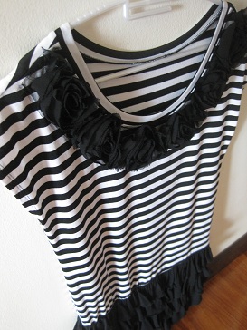 D010. 250 b. เดรสลายทางขาวดำผ้ายืดใส่สบายค่ะ กระโปรงตัดเป็นชั้นๆ ใส่แล้วสวย ไม่อ้วนค่ะ อก 38 นิ้ว ลำตัว 27 นิ้ว สะโพก 40 นิ้ว ยาว 34 นิ้ว