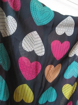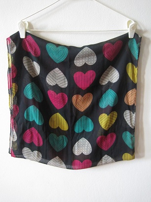 S002. 150 b. ผ้าพันคอชีฟองสีดำ ลายหัวใจหลากสี (ขนาดสี่เหลี่ยมผืนผ้า 45*175 cm.)