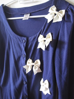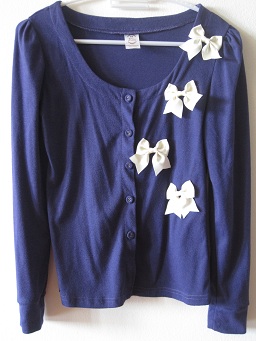 T038. 250 b. เสื้อคาร์ดิเกนสีม่วง ประดับด้วยโบว์สีครีม ให้ลุคหวานๆมากค่ะ
