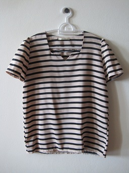 T046. 180 b. เสื้อลายทางสีครีมดำ ทรงสวย ผ้าลื่นๆ ใส่ทำงานสวยมากกค่ะ