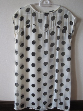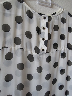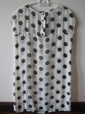 T048. 200 b. เสื้อชีฟองลายจุดดำตัวยาว ผ้านิ่มใส่สบายค่ะ บางคนจะมิกซ์กับเลกกิ้งก้อสวยนะค่ะ อก 37 นิ้ว ลำตัว 39 นิ้ว ยาว 32 นิ้ว
