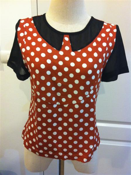 T01 เสื้อpolka dot สไตล์ topshop ผ้านิ่มมากคะแต่ทรงอยู่ตัว แขนผ้าชีฟองดำ