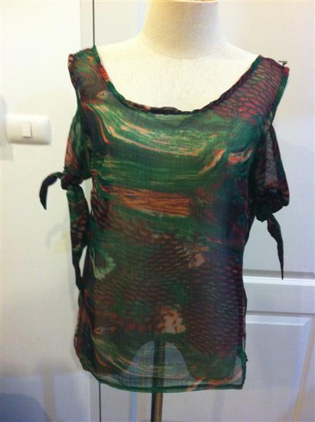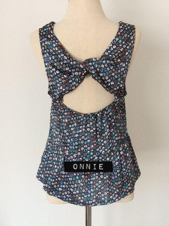 T06 topshop เสื้อลายนกยูง ผูกแขน