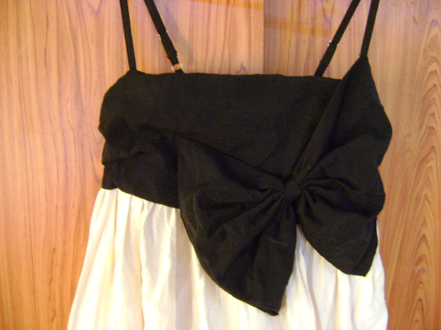 รหัส--N009– ((Used))..ชุดเดรสสีครีม-ดำ กระโปรงทรงบอลลูน แต่งโบว์ช่วงหน้าอก งามมากๆๆใส่แล้วสวยมากๆๆค่ะ