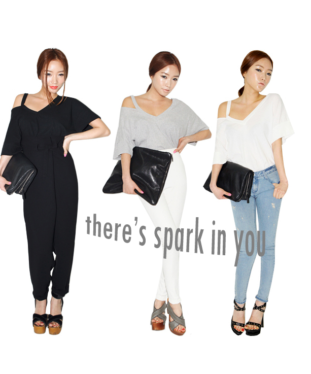 เสื้อเปิดไหล่ 1 ข้าง มีสีดำ 340 บาท