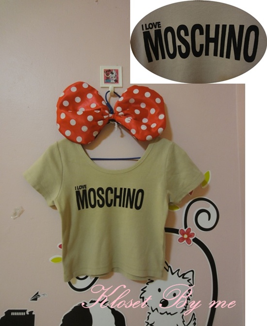 5.USED! Crop i love Moshino จากร้าน Daarin siamsquare อก 34 ยาว 16 นิ้ว สีครีมใส่สองครั้ง