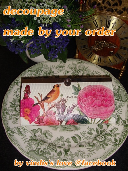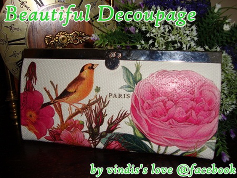 "vindis's love" อีกหนึ่งเดคูพาจ ยอดฝีมือ Hi End Decoupage ที่ใช้ The Signature เป็นงานดิบ หน้าใหม่แห่งวงการเดคูพาจ ผู้กล้าแห่งสีสัน เลือกสีที่ชอบ ลายที่ใช่ ไปใช้ รับรองถูกใจ