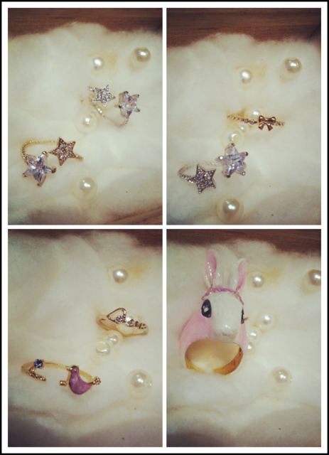 ซ้ายบน แหวน twinkle little star มีสีเงินกับสีทองค่ะ free size ปรับได้ตามนิ้ว แบบคล้าย sretsis เลยค่ะ 390