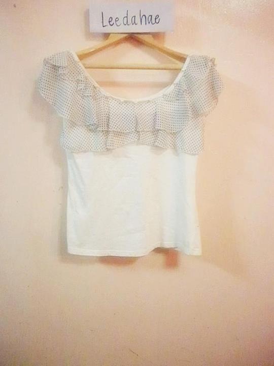 เสื้อคอปาด ระบายช่วงคอ สีขาว 130 บาท รวมส่ง