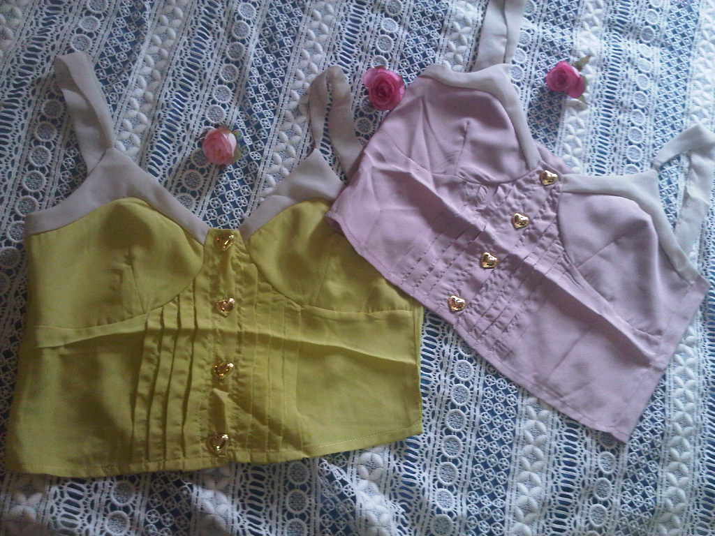 S-01-02 สายเดี่ยวสีพาสเทล งานดีมรากกกกก กระดุมรูปหัวใจน่ารักๆจ้า อก 33 รอบวงแขน 19 ยาว 17 นิ้ว