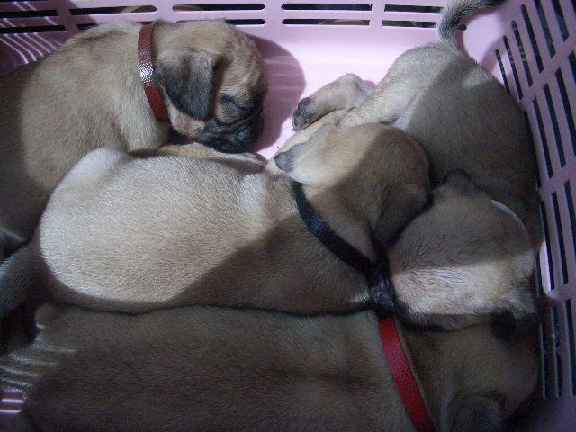 มี 4 ตัว ตัวผู้ทั้งหมด เกิดเมื่อวันที่ 13 เมษายน 53 แข็งแรง ขาวอวบ กำลังน่ารัก พ่อแม่สวยหล่อ แบ่งขายให้กับผู้ที่รักสุนัขพันธุ์ปั๊กเท่านั้น ราคาบ้าน เจ้าของเลี้ยงอย่างดีเจ้าค่ะ และรักมันมากๆๆ ขอขายที่ราคา 3,900 บาท สนใจมาดูก่อนได้ค่ะ ติดต่อ 086-600-7110 หรือ PM แต่โทรจะเร็วกว่าค่ะ