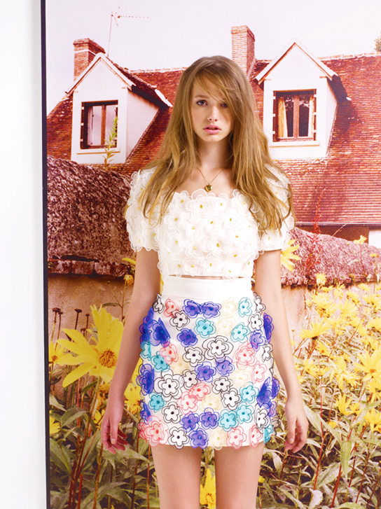 กระโปรงสีขาวจะทำออกมาเป็นทรงเอตามต้นฉบับของแท้เลยค่ะรวมไปถึงเนื้อผ้า ดอกไม้มีทั้งด้านหน้าและด้านหลังค่ะ ของจริงสีจะอ่อนกว่าในรูปนะคะ