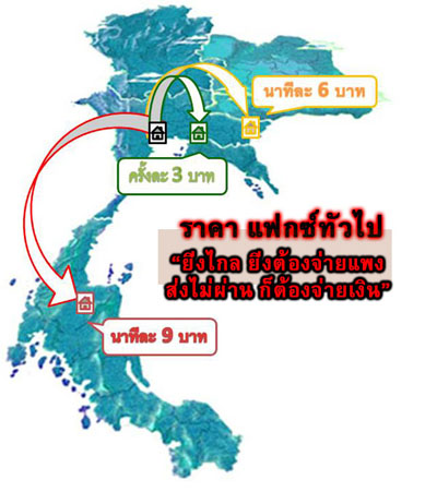 บริการส่งแฟกซ์ มีระบบเงิน คล้ายกับระบบเติมเงินมือถือ คือ ผู้ใช้ต้องโอนเงิน เข้ามาเก็บไว้ในระบบของเราก่อน เรียกว่า มูลค่าสะสม เมื่อมีการใช้งานเกิดขึ้น เราจะหักค่าใช้บริการ จากมูลค่าสะสมตามช่วงเวลาการส่งแฟกซ์ คือ ช่วงเวลา 21.00 น. - 05.00 น. ค่าบริการครั้งละ 1.5 บาท ส่วนช่วงเวลาอื่นๆ ค่าบริการครั้งละ 2 บาท สามารถใช้ได้ไปจนกว่ามูลค่าสะสมจะหมด ไม่มีวันหมดอายุ