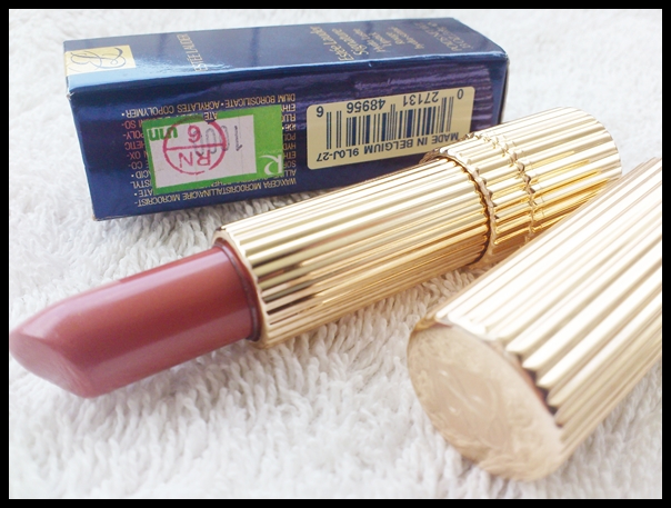 สีอันเลื่องลือของลิปสติกยี่ห้อนี้ค่ะ มีกลิ่นกุหลาบอ่อน ใช้ไปน้อยนะคะ โลโก้ที่ตัวแท่งยังอยู่เลย