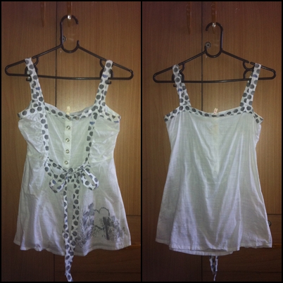 เสื้อสายเดี่ยว แต่งลายวินเทจ มีโบว์ผูกได้ทั้งด้านหน้าและหลังค่ะ
