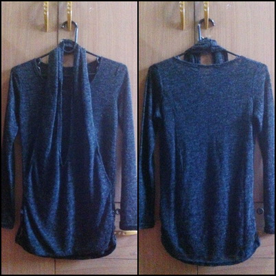 New~เสื้อแขนยาวสีเทาเข้ม ตกแต่งคล้องคอด้านหน้า เหมือนผ้าพันคอ