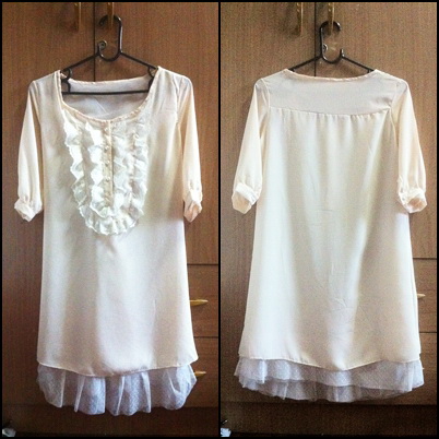 New~ชุดเดรสสีครีม แต่งลูกไม้ ดีไซน์สวยหรู สามารถใส่ออกงานได้ค่ะ
