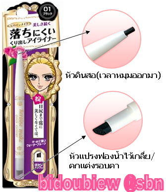 - อายไลเนอร์ มีคุณสมบัติ กันน้ำ กันหงื่อ ติดทนนานตลอดวันแต่ล้างออกง่ายด้วย oil ล้างหน้าหรือ eye remover