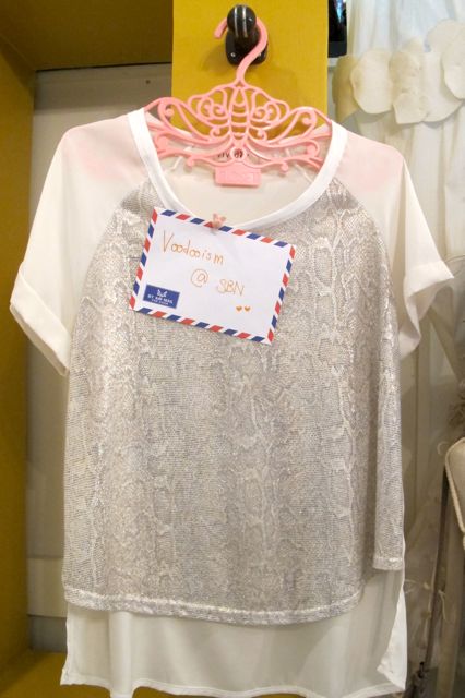 เสื้อลายหนังงูสีขาว วิ้งๆ ผ้าลื่นใส่เบาๆสบายมากค่ะ ได้มากจาก Miss Plabed ใส่ไปครั้งเดียวค่ะ