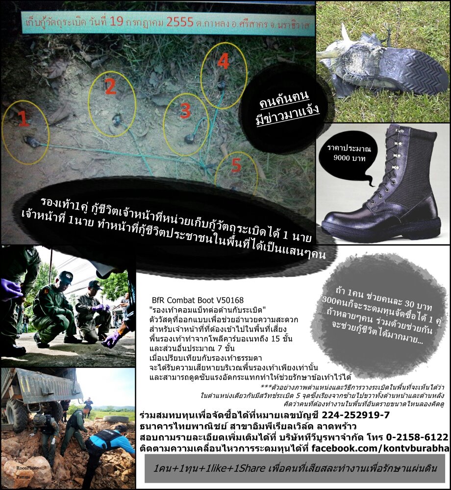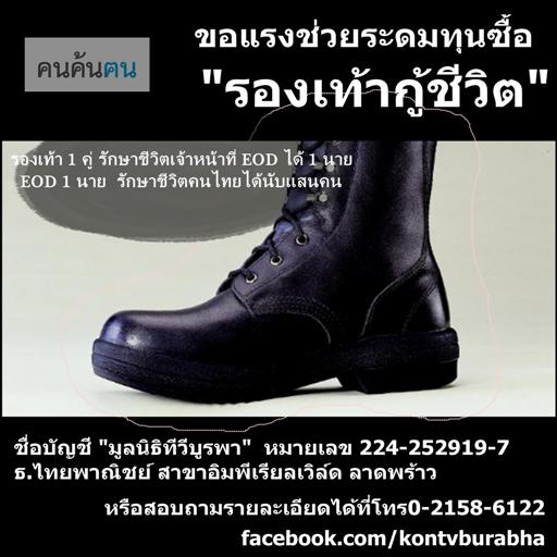 "รองเท้ากู้ชีวิต" ขอแรงช่วยระดมทุนซื้อ รองเท้ากู้ชีวิต รองเท้า 1คู่ รักษาชีวิตเจ้าหน้าที่ eodได้ 1นาย eod 1นาย รักษาชีวิตคนไทยได้นับแสนคน