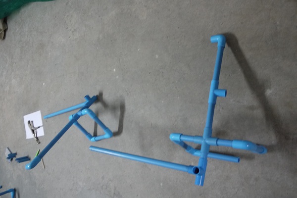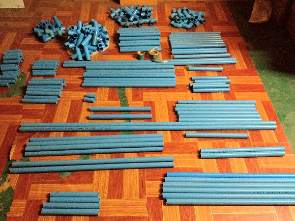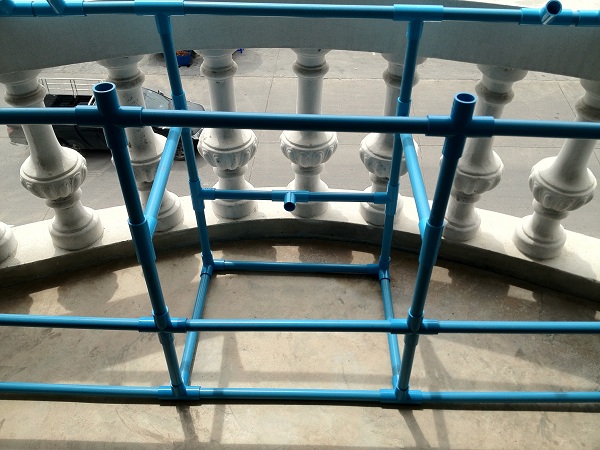 จากนั้นจึงนำท่อน้ำ PVC มาทำโครงเพื่อให้ไม้เลื้อย ที่เลือกท่อนั้นเพราะตั้งใจว่าจะให้น้ำไหลไปตามท่อ และค่อยหยดไปที่ต้นไม้ผ่านหัวหยดที่ติดกับท่อ จะได้ไม่ต้องกังวลเรื่องรดน้ำต้นไม้