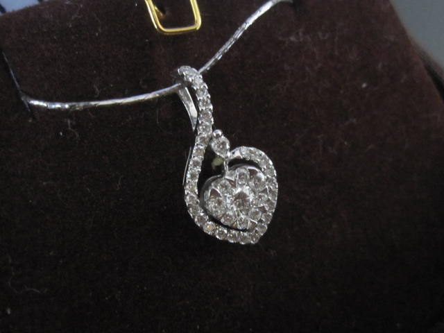 6. จี้หัวใจ ตัวเรือนทองคำขาว น้ำ 97 น้ำหนักเพชร รวม 0.39 ct ,G 1.50g แบบว่าเห็นเพชรเต็มๆ ค่ะ ของจริงสวยกว่ามากค่ะ ความยาวจี้ 1.8 cm ค่ะ กำลังเหมาะใส่ได้ ทุกวันเลย งามแต้ๆค่ะ 19,900 บาท