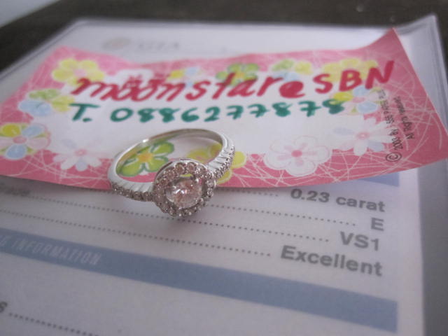 14. แหวนเพชร น้ำงาม อีกวง ที่มองยังไง ก็สวยค่ะ เพชรน้ำ 99 E vvs1 ขาวไร้สี เม็ดกลาง 0.23ct พร้อมใบ cer GIA และ D0.23 ct WG 2.08 g ไซด์ 50 ค่ะ ใส่เพชรสวยๆ ไม่อายใครแน่นอนค่ะ ของจริงสวยเกินบรรยายค่ะ ถ่ายภาพมาไม่สวยเท่าค่ะ 38,900 บาท