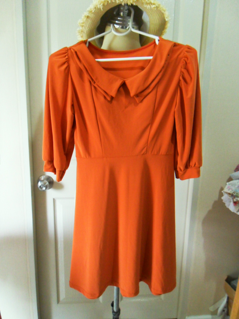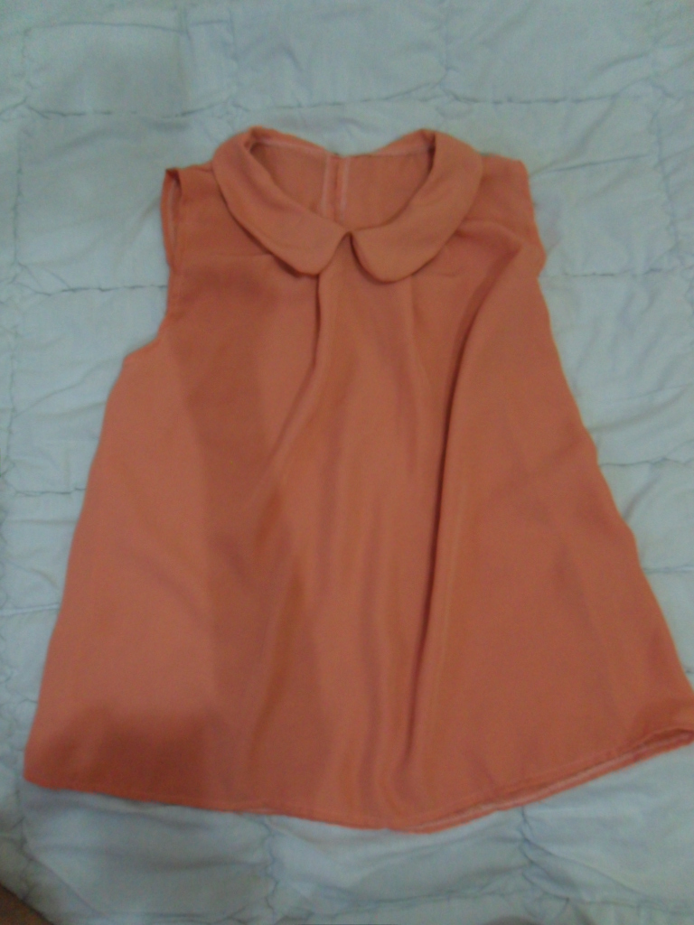 เสื้อแขนกุดสีส้มคอบัวสภาพดีไม่มีตำหนิค่ะ 100 บาท