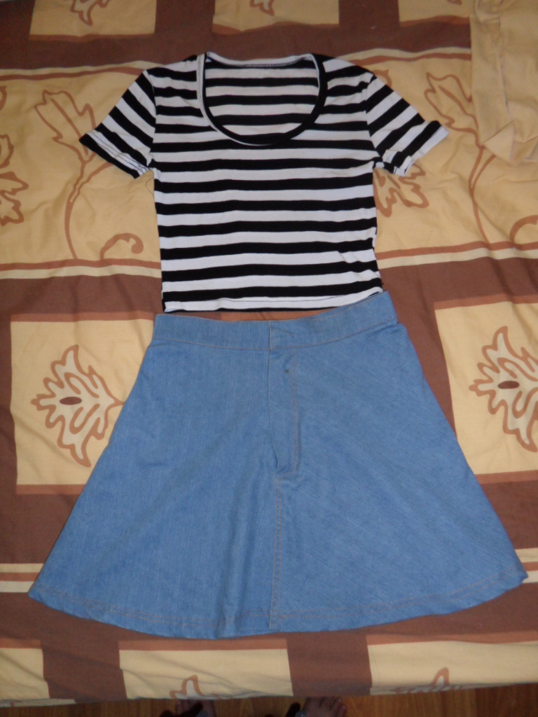 กระโปรง ยีนส์สีฟ้าอ่อน ๆทรงเอ สุดฮิตค่ะ Size S ขาย 200
