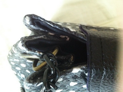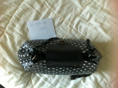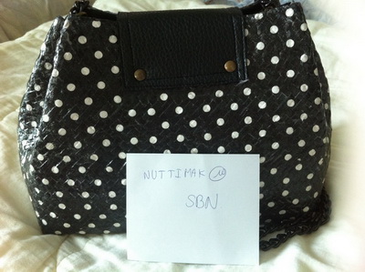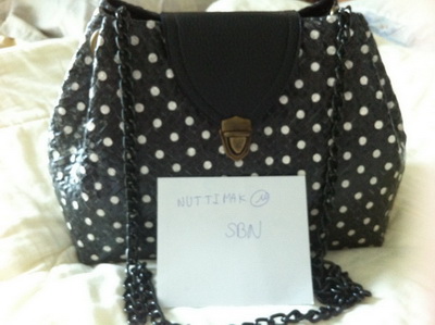 2. (New) กระเป๋าลายจุดสีดำ ทำจากกระจูด มีสายเป็นสายโซ่ น่ารักมากค่ะ ตัวกระเป๋าเป็นทรงเวลาถือเหมือนคุณหนูมากค่ะ ใบนี้ซื้อมาเพราะอุดหนุนเพิ่อนเปิดร้าน ไม่เคยใช้เพราะเราเกินวัยไปแล้วค่ะ ซื้อมาแพงมากขอขายที่ 990 บาทค่ะ