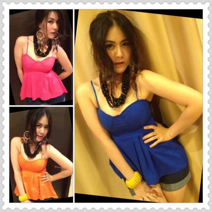 6.สายเดี่ยวเสริมฟองน้ำหน้าอกใส่แล้วดูมๆ เซ็กซี่ค่ะ