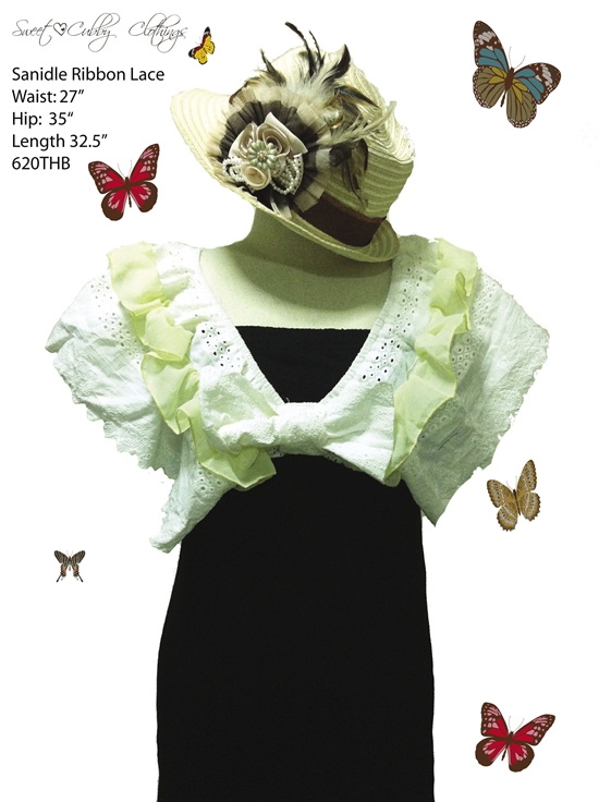 เอว: ด้านหลังเป็นสม็อค ยืดได้ถึง30"