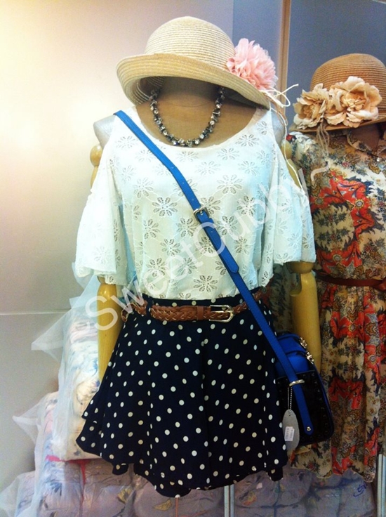 เสื้อลูกไม้ลายดอกเว้าไหล่น่ารักๆ