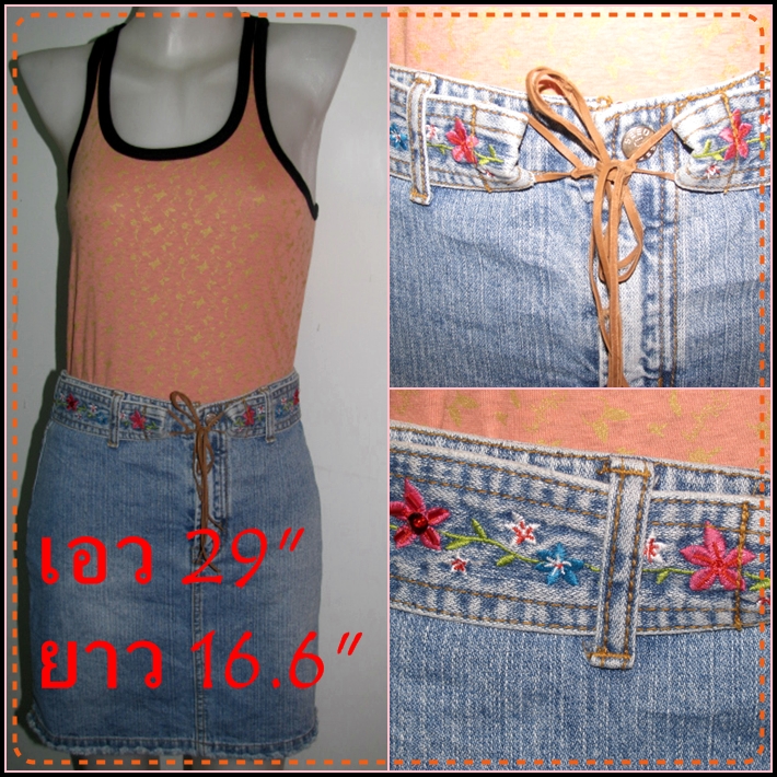 ตัวแรกค่ะ เป็นกระโปรงยีนส์สั้น น่ารักมากค่ะ แต่งเข็มขัดในตัว เป็นลายปักดอกไม้