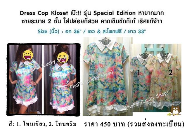 6. เดรสสไตล์วินเทจ ปกปีกนก แขนสามส่วน ไซส์ อก 36" เอวยางยืด สะโพกฟรี ยาว 32"