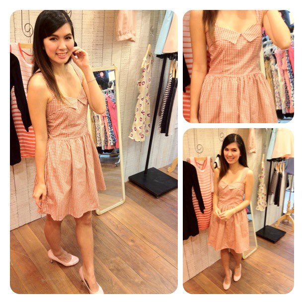 Used Once ** เดรสกระโปรงรูดที่อกปกพับ ลายตารางสีส้มอิฐ-ครีม