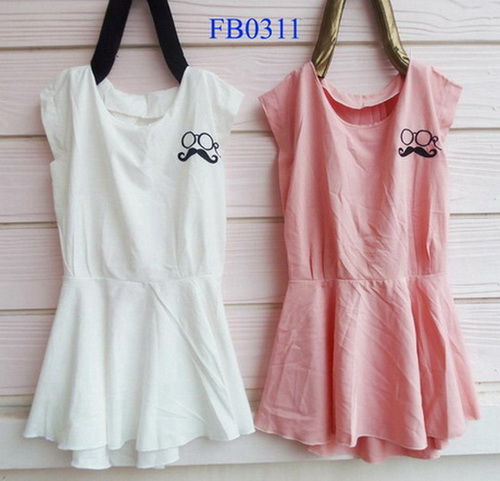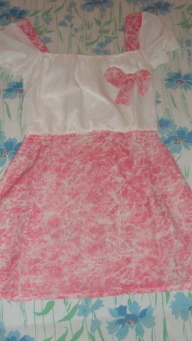 ชุดผ้าต่อเสื้อขาวแขนตุ๊กตาต่อกระโปรงสีขมพู อก 32-34' ยาว 27" สะโพก 38" สม๊อกเอวรอบตัว