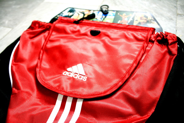 4.กระเป๋าผ้า Adidas สีแดง มีช่องซิปด้านหน้า