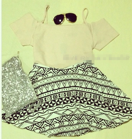 6)เสื้อตัวสั้น , กระโปรงลายกราฟฟิค สวยมากค่ะ (ขายแยกนะคะ)