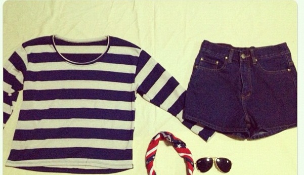 11)เสื้อลายทางสีกรม-กางเกงยีนเอวสูงไซต์s,m (ขายแยกนะคะ)